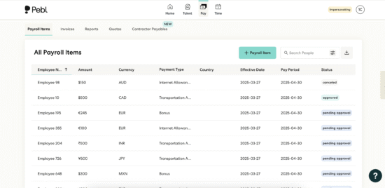 Pebl’s Global Work Platform is the smarter way to build and scale a global workforce. In one unified solution, we help companies hire, pay, and support talent in 185+ countries covering Employer of Record, contractor management, payroll, immigration, benefits, equity, and more.